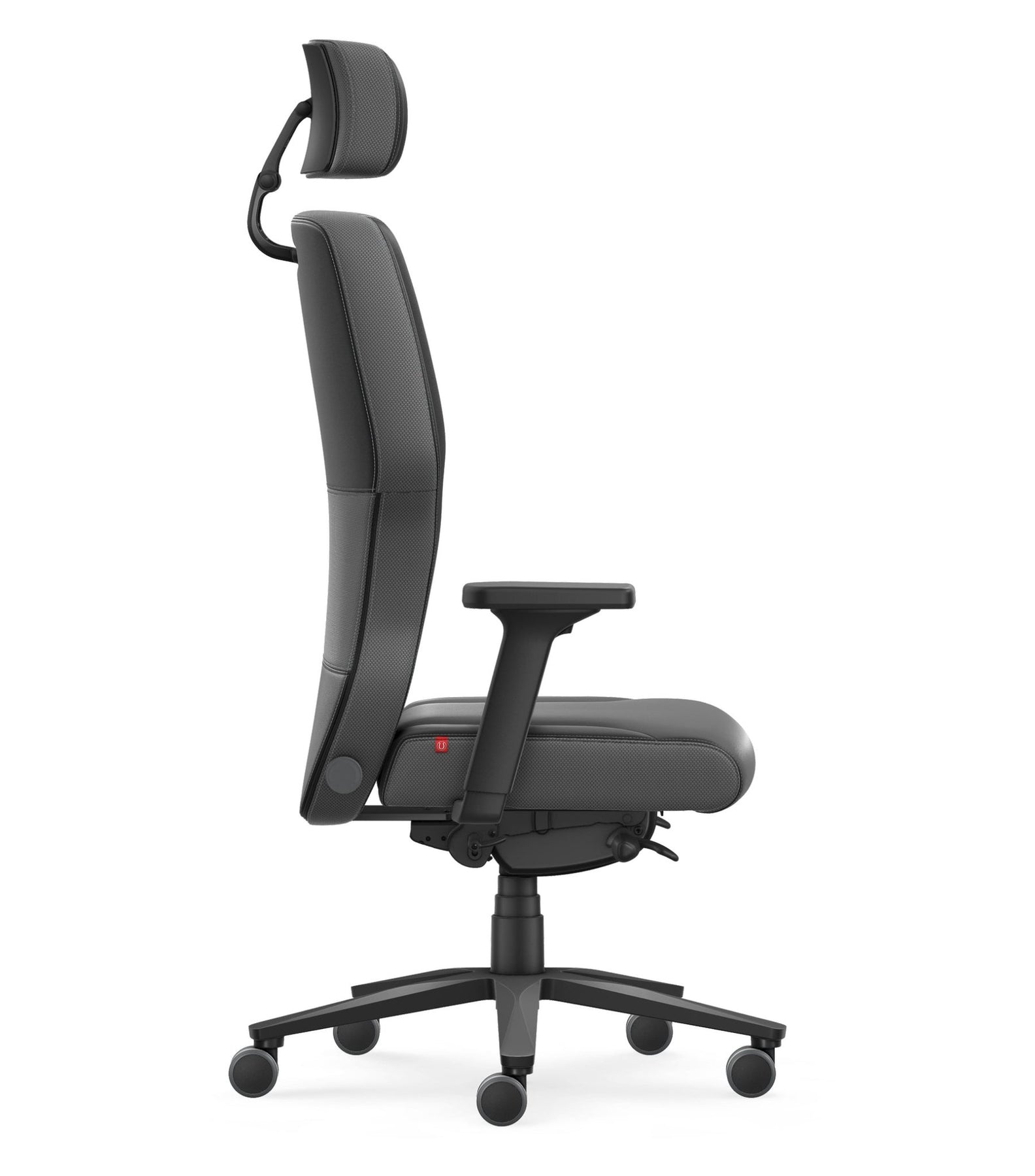 Eine extrabreite und verlängerte Sitzfläche, die hohe Rückenlehne mit integrierter Kopfstütze sowie eine besonders großzügige Polsterung sorgen selbst an langen Arbeitstagen für ein außergewöhnlich bequemes Sitzgefühl.